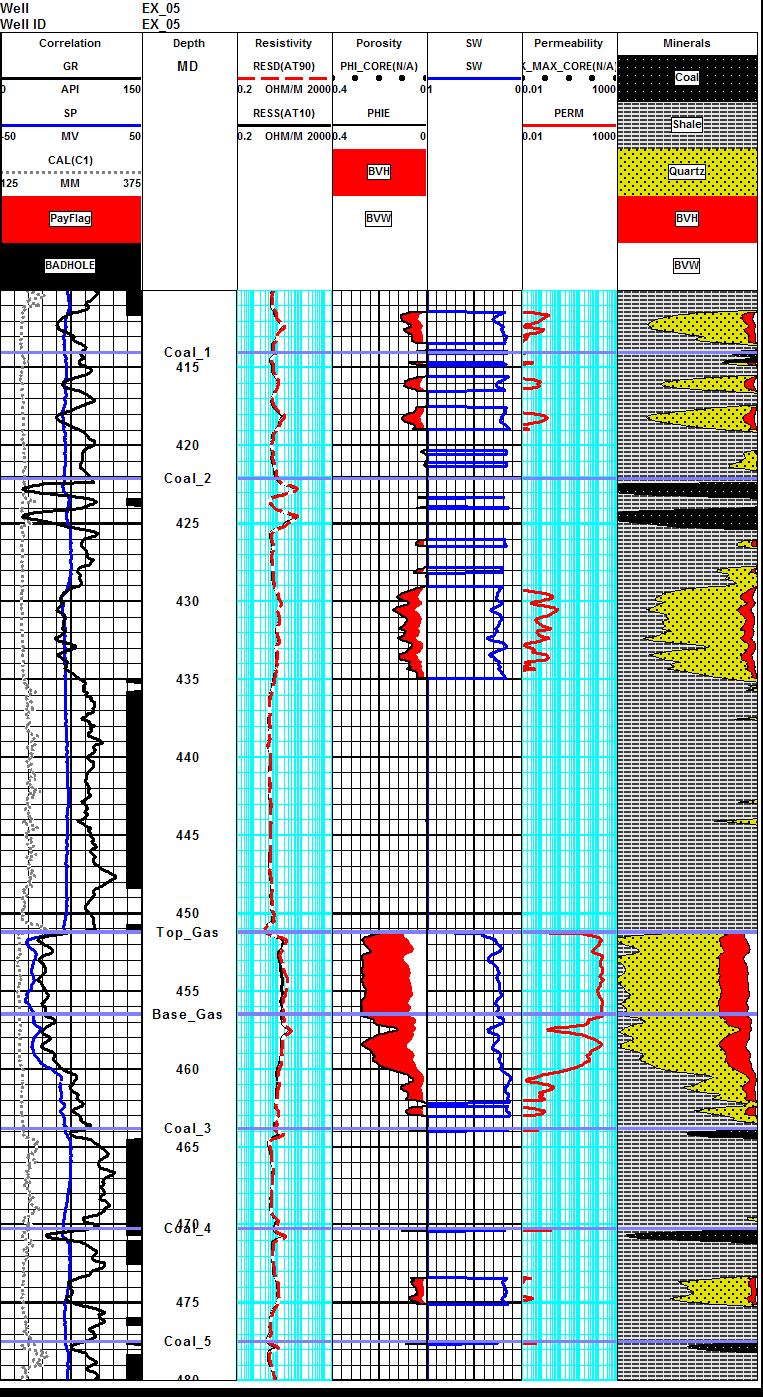 resistivity log (Track 2) displayed on a compute rplot to simulate