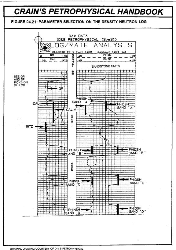 shale (PHINSH) and density porosity of shale (PHIDSH).