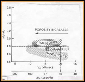 This ratio is used in seismic calibration and interpretation as a guide to lithology. Vp/Vs is relatively independent of porosity and fluid type (little gas effect).