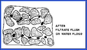 The process of drilling fluid invasion into the formation displaces oil or gas much the same as water influx from an aquifer or a waterflood. The oil or gas that is swept ahead of the invasion is called moveable hydrocarbons. That left behind is called residual oil or residual gas.