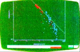 The value for the saturation exponent N is usually found in the laboratory as shown below. It is a plot of resistivity index ( I ) versus water saturation. Several partial saturations are taken on each core plug and N is determined from the slope of the line through these points. N can be varied by defining lithofacies for each core plug and relating this to some log signature. There is no equivalent crossplot to find N from log data.