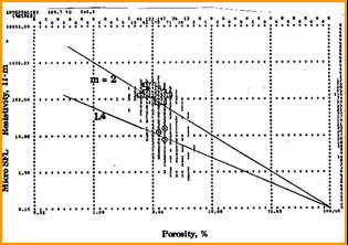 He also found that F varied with porosity: 2: F = A / (PHIt ^ M)