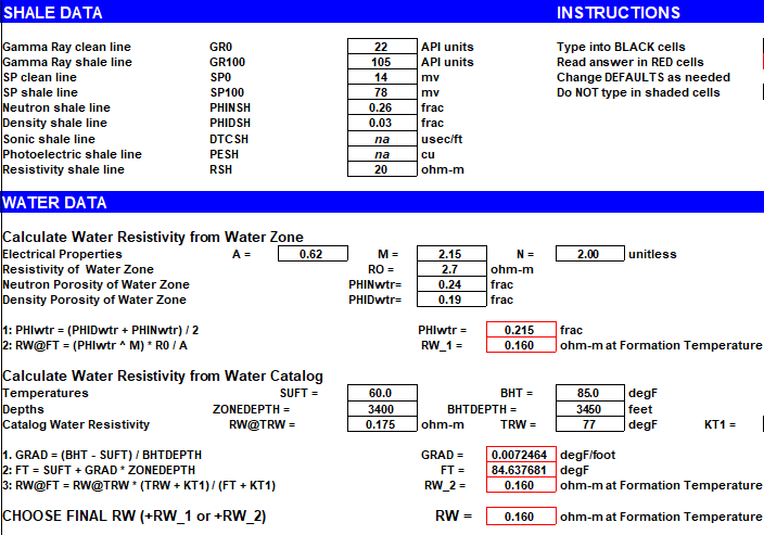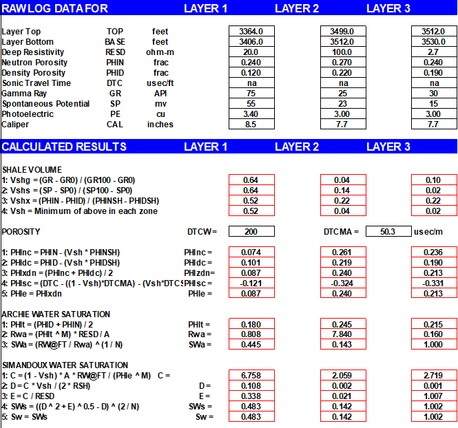 Spreadsheet software provides the fastest method for quantitative petrophysical