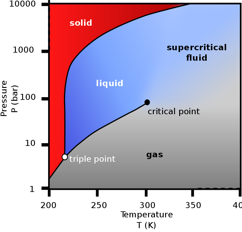 point for CO2 is 31.1 C and 7.38 MPa, above which the distinction