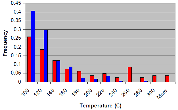 C or more OR "Medium Temperature”, below 150 degrees C and down to