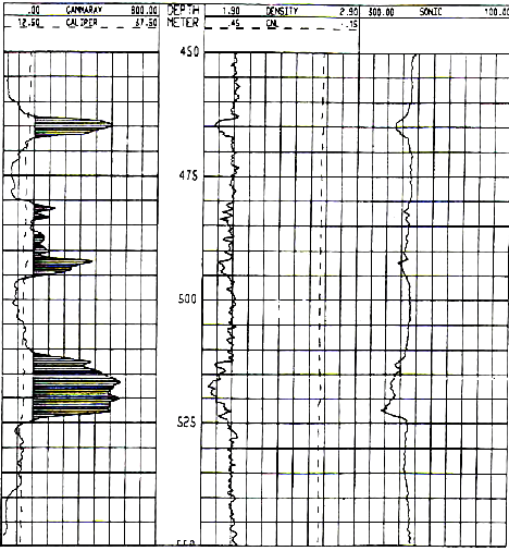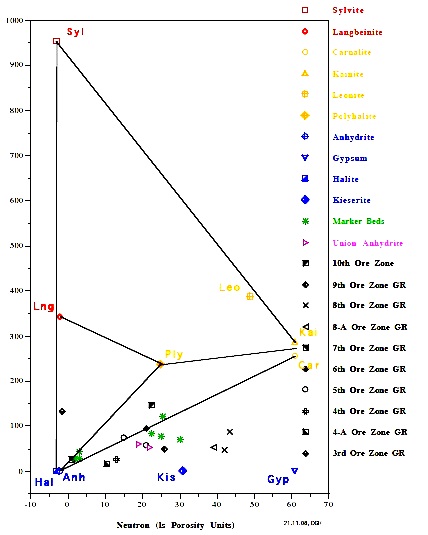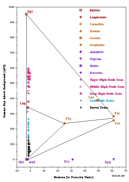 identify potash bearing zones. Potash minerals have distinctive