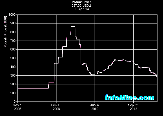 Russian / Belerus potash cartel in 2012 pushed prices into the $300