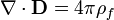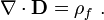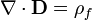 The formulation of Table 1 is assumed; that is, ρf is the "free" electric charge density (in units of C/m³), not including bound charge from the polarization of a material, and is the electric displacement field (in units of C/m²). For stationary charges in vacuum, the force exerted upon one point charge by another as found from Gauss's law is Coulomb's law.