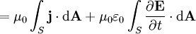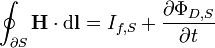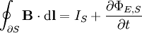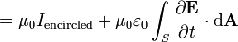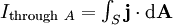 C is the edge of the open surface A (any surface with the curve C as its edge will do), and Iencircled is the current encircled by the curve C (the current through any surface is defined by the equation: ). Sometimes this integral form of Ampere-Maxwell Law is written as: