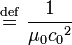 In free space, the permeability μ is the magnetic constant, μ0, which is defined to be exactly 4π×10-7 Wb/A•m. Also, the permittivity becomes the electric constant ε0, also a defined quantity. Thus, in free space, the equation becomes: