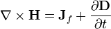 where is the magnetic field strength (in units of A/m), related to the magnetic flux density by a constant called the permeability, μ (), and J is the current density, defined by: where is a vector field called the drift velocity that describes the velocities of the charge carriers which have a density described by the scalar function ρq. The second term on the right hand side of Ampère's Circuital Law is known as the displacement current.