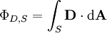 flux of electric displacement field through any surface S, not necessarily closed coulombs