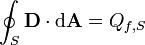 Qenclosed is the free charge enclosed within the surface S. (If the surface itself is charged, that gives an extra contribution weighted by a factor 1/2.)