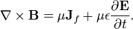 These are formally identical to the general formulation in terms of E and B (given above), except that the permittivity of free space was replaced with the permittivity of the material (THIS CHAPTER displacement field, electric susceptibility and polarization density), the permeability of free space was replaced with the permeability of the material, and only free charges and currents are included (instead of all charges and currents).