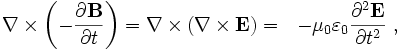The traveling wave solution is found by substitution of one of the curl equations into the time derivative of the other, producing: