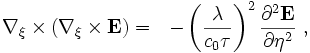 which reduces to the electromagnetic wave equation due to an identity in vector calculus. The equation is satisfied in one dimension, for example, by a solution of the form E = E( x − c0t ), that is, by a solution that is unchanged when t advances to t + Δt at a position x that advances to x + c0 Δt.