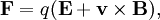 The force exerted upon a charged particle by the electric field and magnetic field is given by the Lorentz force equation: