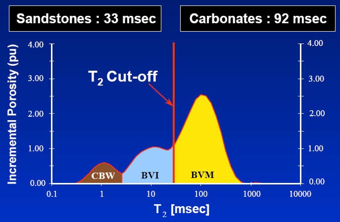 hydrocarbon density. T2 cutoff between BVI and BVM varies with