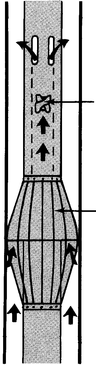 Diverting flowmeters are the most accurate of the spinner devices in low rate and multi-phase wells. The flow is diverted through the tool barrel, which raises the velocity of flow and increases the sensitivity so that they can detect rates as low as 10 to 15 bpd. Diversion of fluid into the tool barrel is accomplished by a skirt of fabric or metal leaves that are deployed to contact the tubing or casing wall. Often called basket flowmeters, the skirt exhibits little leakage even below tubing. Older tools used an inflatable packer to divert all flow through the tool.
