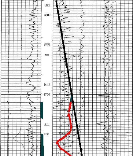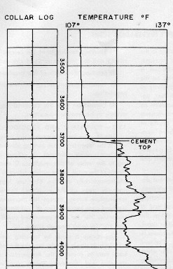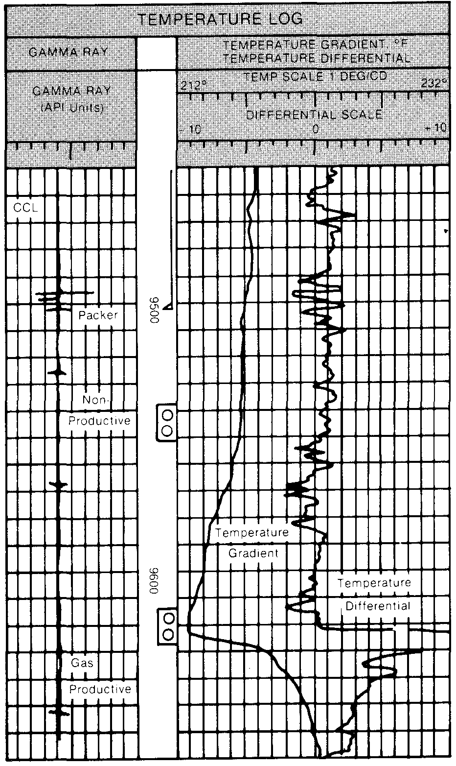<== Temperature log recorded with density neutron log. ln open hole over a gas shale shows cooling (highlighted in
