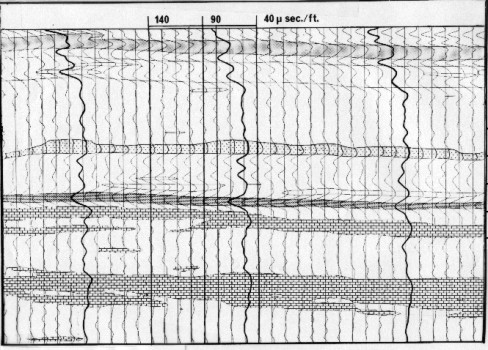 and fluid changes. Raw sonic, density, and gamma ray logs overlaid