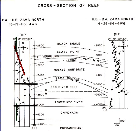 SW so reef thickens to NW. Well 16-19 has about 160 feet of pay