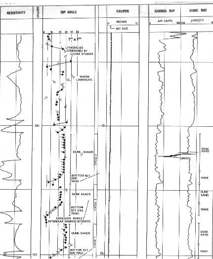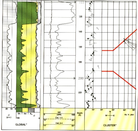 sand section successfully logged with oil base dipmeter. Cylindrical