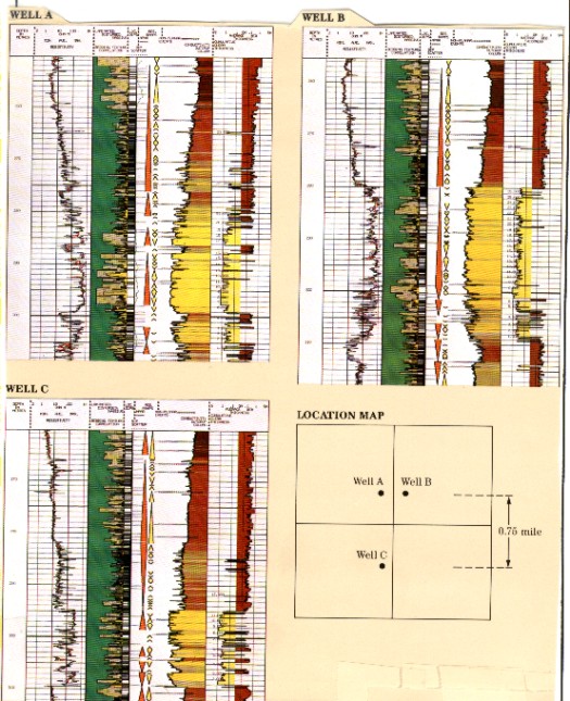 C shows a loss of 80 feet of sand at the base and Well D has only
