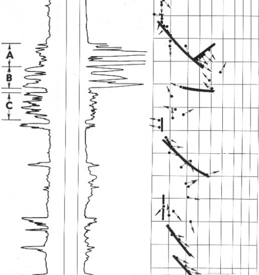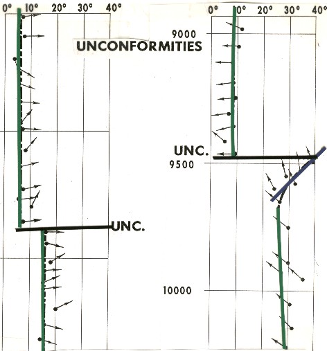 dipmeter run on Well "B" exhibits the pattern of increasing
