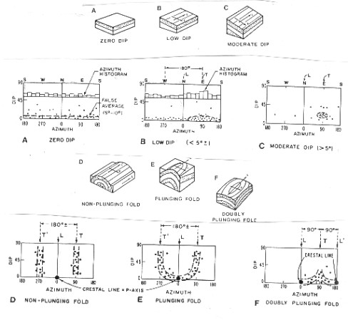 patterns on dip angle vs dip azimuth plots may be simple or complex.